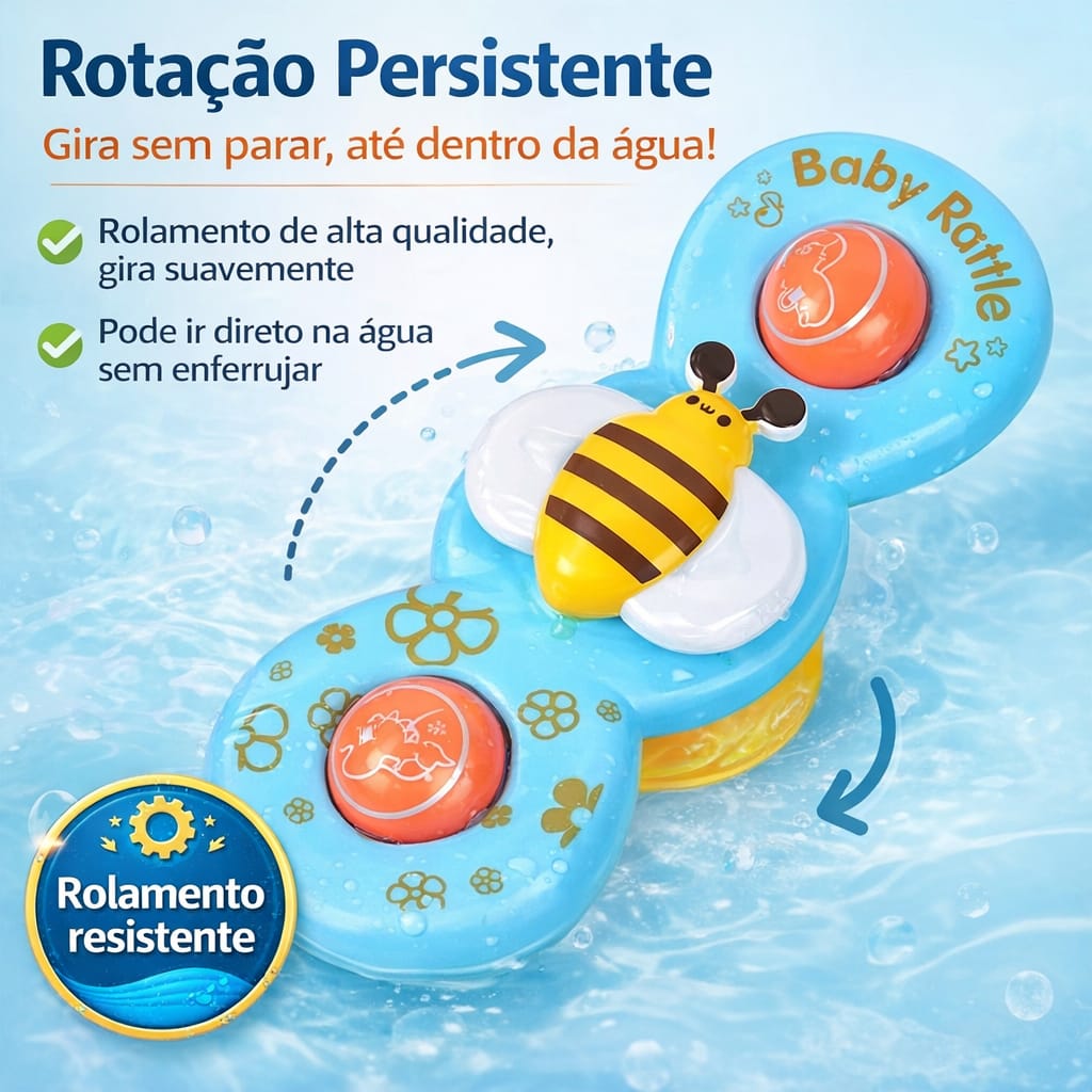 É só fixar na parede, no box ou na banheira… e deixar a diversão girar! 🌪️